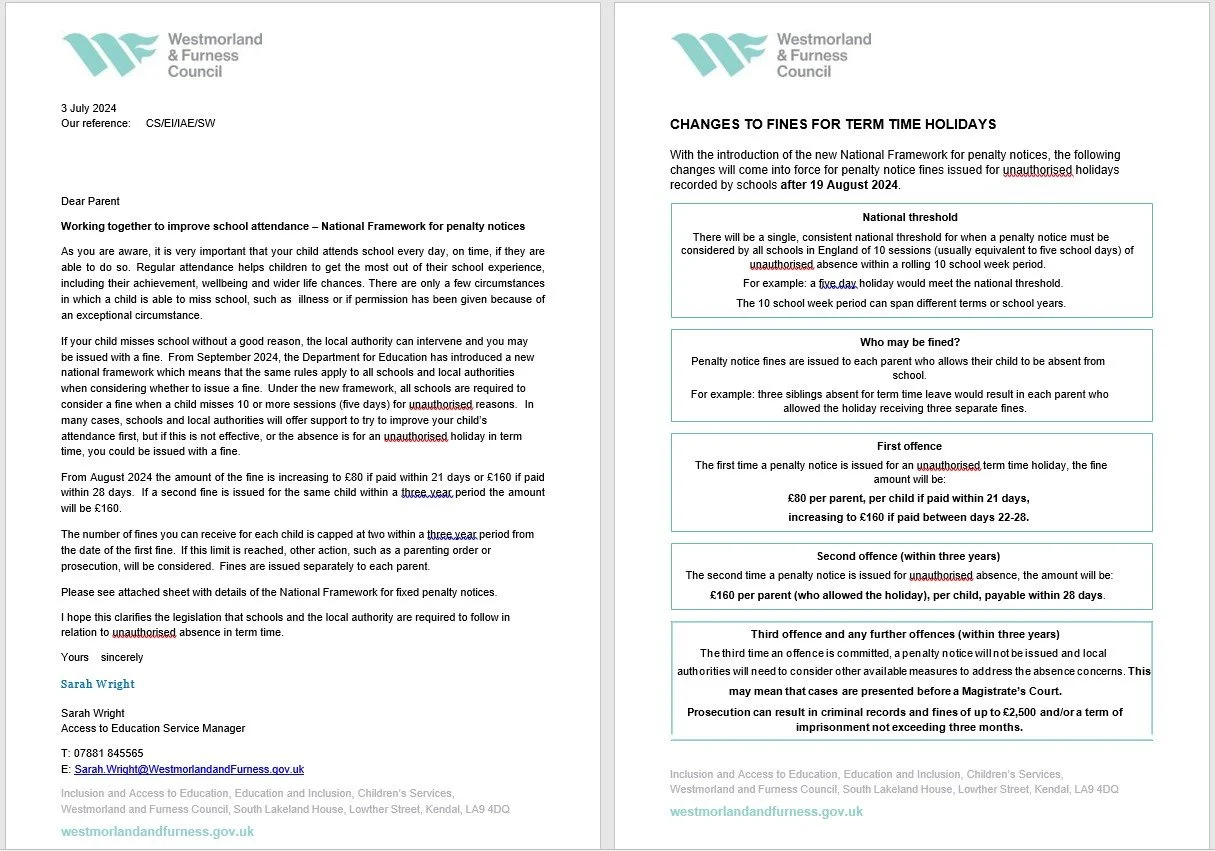 Westmorland & Furness Council - Leave of Absence in Term Time