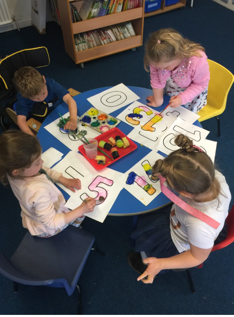 Painting our numbers using different tools and colours.