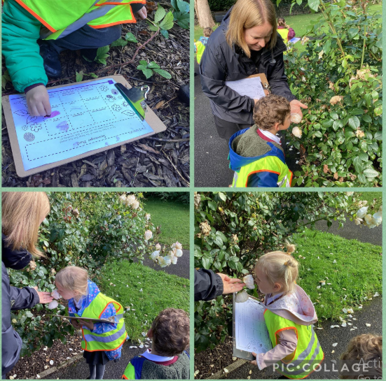 Then we set off on an exciting scavenger hunt, searching for signs of God’s beautiful creation. The children discovered 🌿 green leaves, 🌸 petals, 🌱 mud, 👩👩👧 people, 🐾 animals and so many other wonderful treasures.