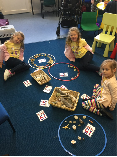 We are using our seashells to count and match our numbers.
