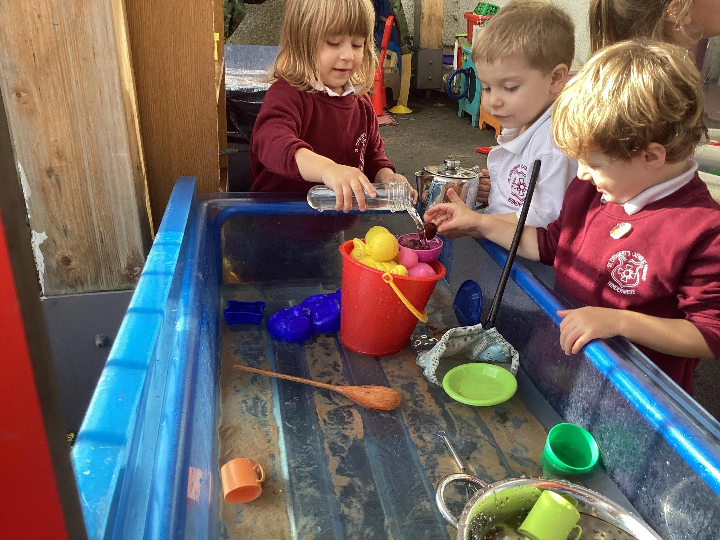 Nursery and Reception love to learn through play. Our outdoor area enables us to be creative, explore and sometimes get messy! We have lots of fun!